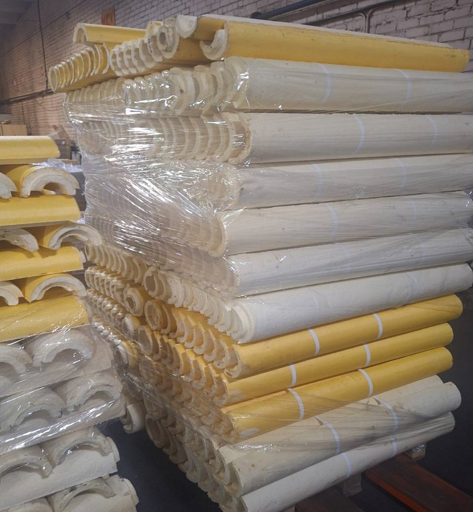 Количество элементов зависит от диаметра трубы. Популярная двухсегментная конструкция цилиндрической оболочки рассчитана для размера до 720 мм, для трубы диаметром 720 –820 мм необходима скорлупа из трех частей, теплоизоляция для труб большей величины выпускается 4-х сегментной.